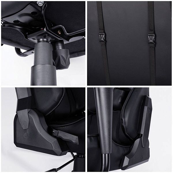 - Дополнительные функции: встроенные подставки для геймпадов, клавиатуры или экранов, а также крепления для руля и педалей, делают кресло многофункциональным и удобным.
