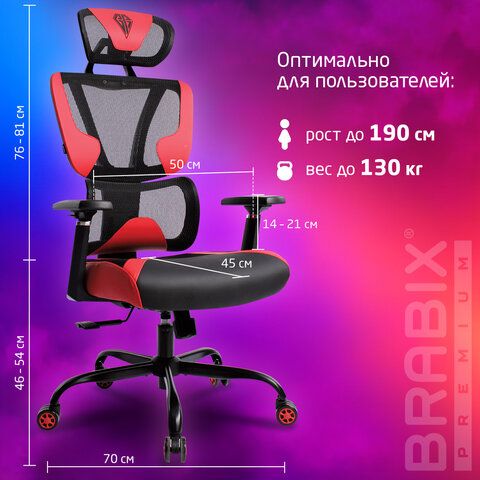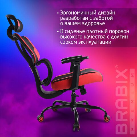 Кресло BRABIX PREMIUM "Toxin GM-520", синхромеханизм, экокожа/сетка/ткань, черное/красное, 532950