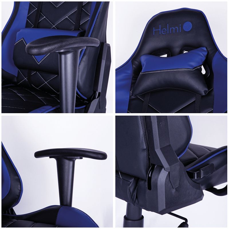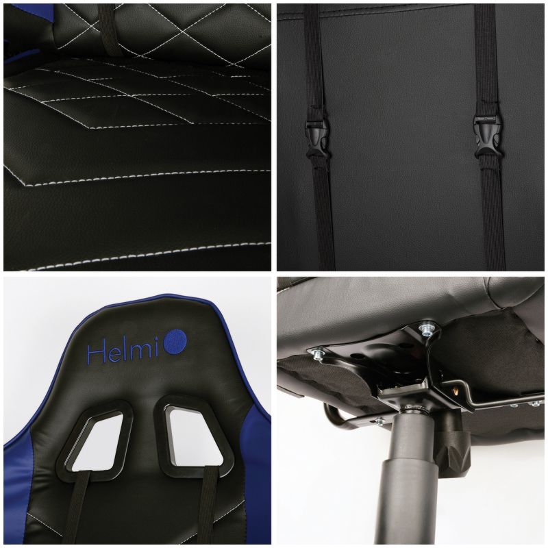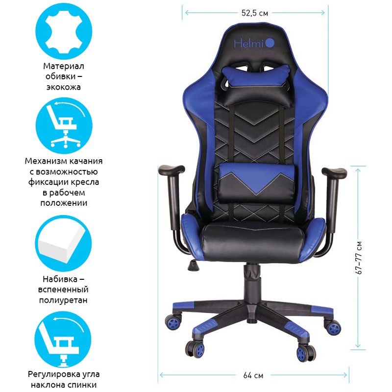 Кресло игровое Helmi HL-G02 "Grand Prix", экокожа, черная/синяя, 2 подушки