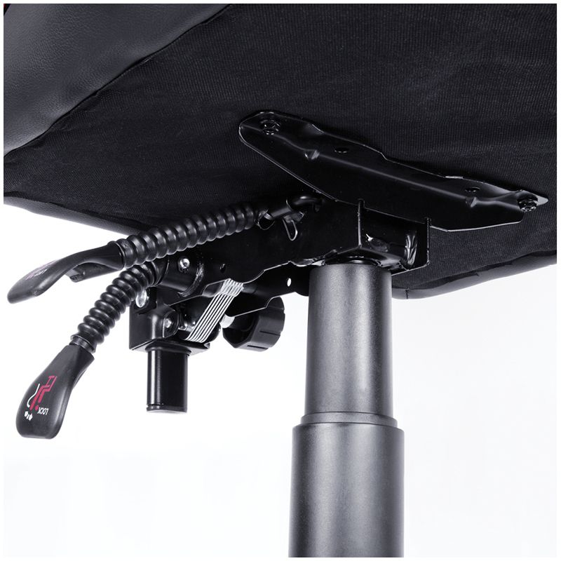 Максимальная нагрузка составляет 120 кг. Газпатрон 3 класса по стандарту BIFMA X5.1. Каркас – немонолитный, материал набивки – вспененный полиуретан, крестовина – пластиковая, подлокотники – пластиковые с накладками из экокожи, материал обивки – экокожа чёрного цвета с вставками красного цвета. Механизм качания с возможностью фиксации кресла в рабочем положении. Гарантийный срок – 12 месяцев.