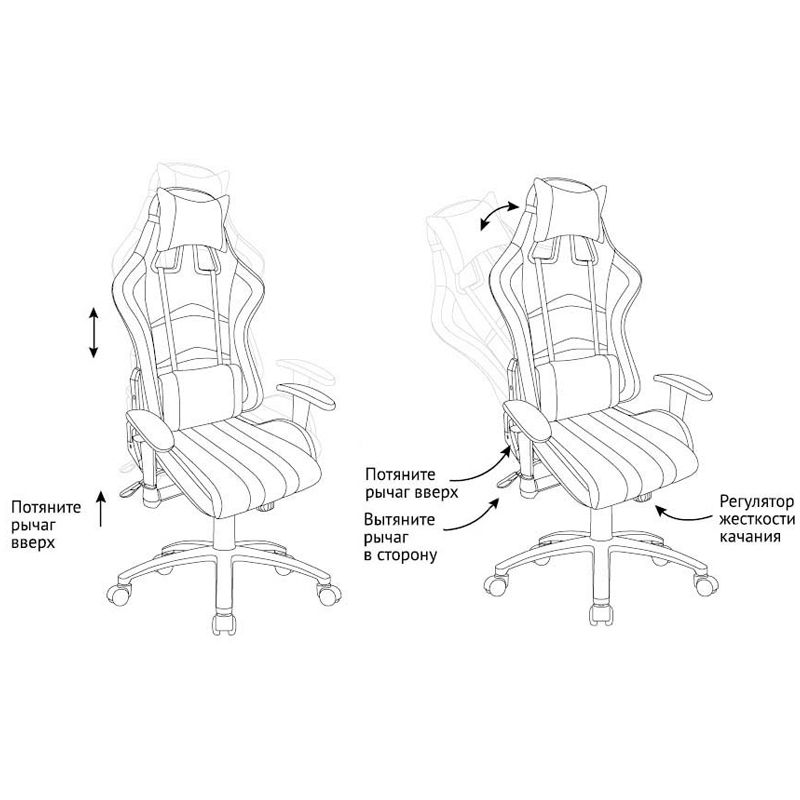 Регулируемые по высоте подлокотники, спинка с большим углом наклона, подголовная и поясничная подушки создают убедительную эргономику особенно ценную во время важных игр. Обивка из фактурной ткани практична в эксплуатации и неприхотлива в уходе.