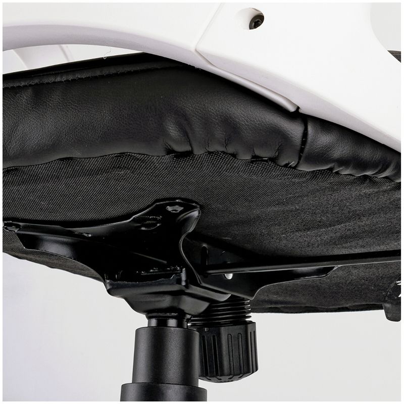 Максимальная нагрузка составляет 120 кг. Газпатрон 3 класса по стандарту DIN EN 16955. Каркас – немонолитный, материал набивки – вспененный полиуретан, крестовина и подлокотники – белый пластик, материал обивки –экокожа/ткань/сетка чёрного цвета. Механизм качания с возможностью фиксации кресла в рабочем положении. Гарантийный срок – 12 месяцев.