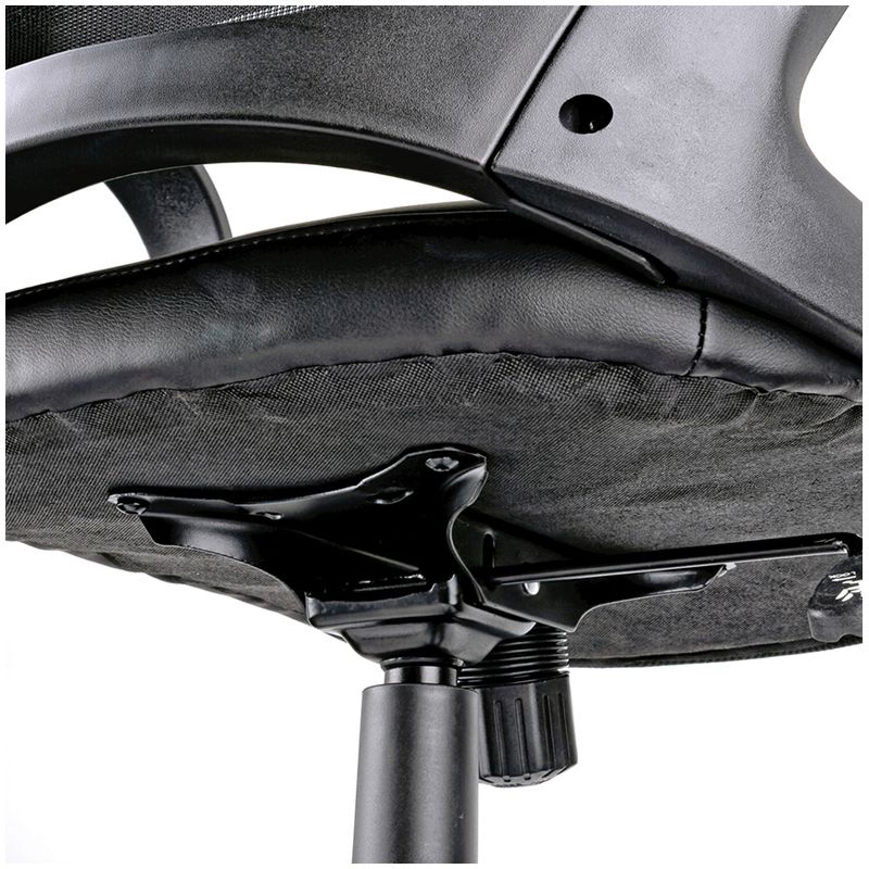 Максимальная нагрузка составляет 120 кг. Газпатрон 3 класса по стандарту DIN EN 16955. Каркас – немонолитный, материал набивки – вспененный полиуретан, крестовина и подлокотники – чёрный пластик, материал обивки –экокожа/ткань/сетка чёрного цвета. Механизм качания с возможностью фиксации кресла в рабочем положении. Гарантийный срок – 12 месяцев.