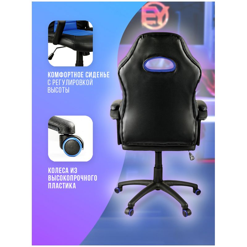 Кресло игровое Helmi HL-S06 "Highway", экокожа/ткань черная/синяя