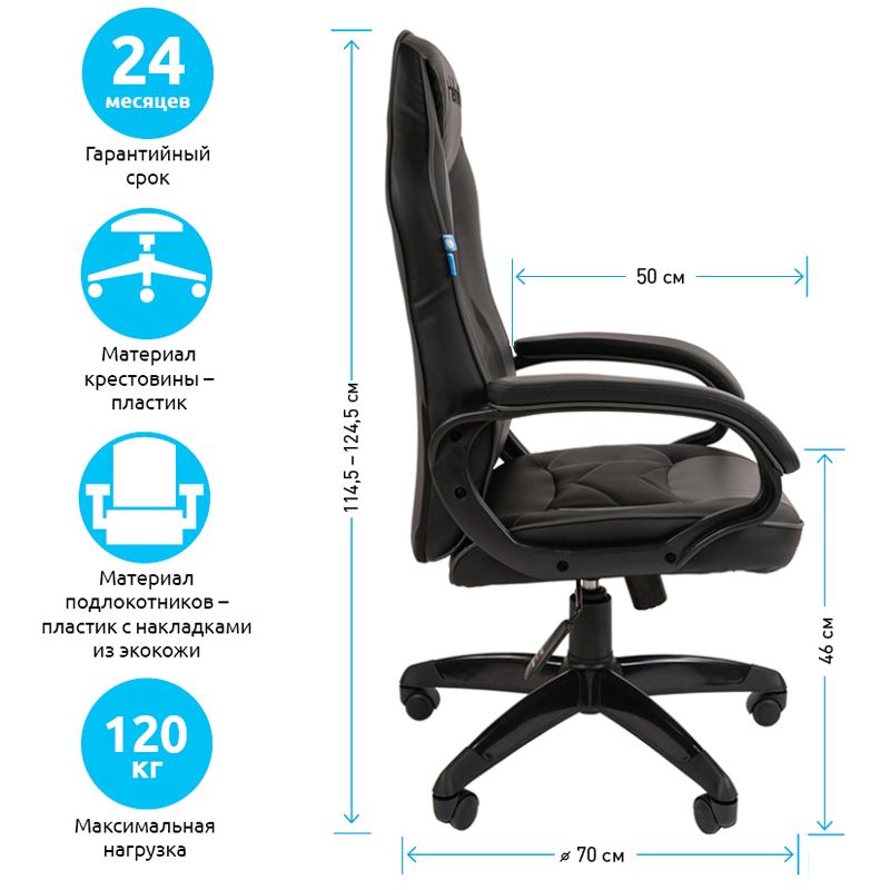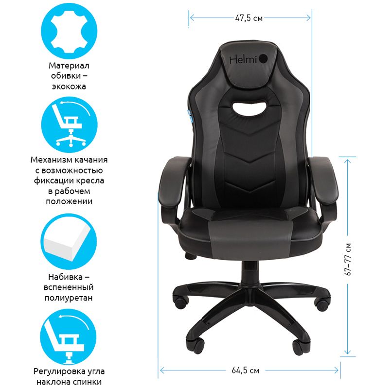 Кресло игровое Helmi HL-S15 "Skyline", экокожа, черная/серая, механизм качания