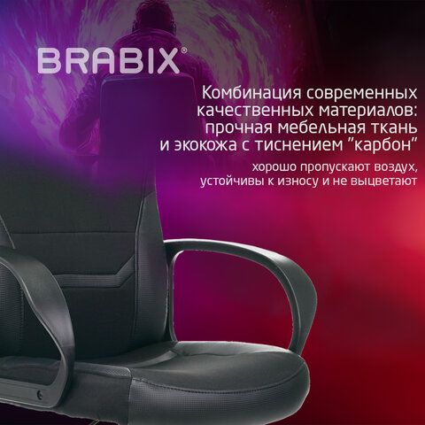 Кресло компьютерное BRABIX "Alpha GM-018", ткань/экокожа, черное, 532636, GM-018_532636