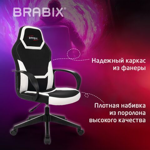 Кресло компьютерное BRABIX "Alpha GM-018", ткань/экокожа, черное/белое, 532640, GM-018_532640