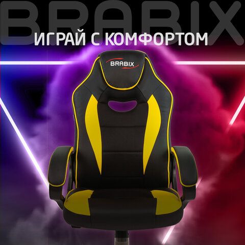 Кресло компьютерное BRABIX "Blaze GM-162", TW/экокожа, черное/желтое, 532579, 7083507
