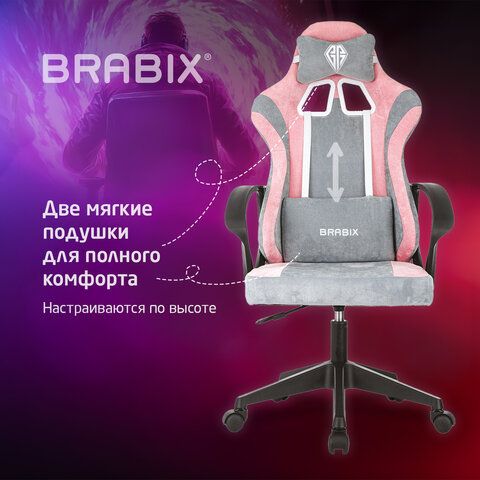 Кресло компьютерное BRABIX ''Forcer GM-127'', 2 подушки, ткань, розовое/серое, 533215