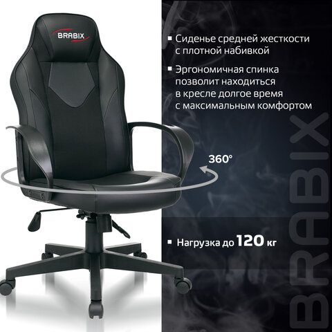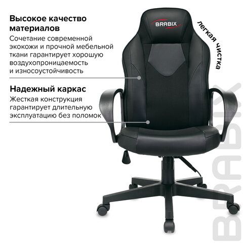 Кресло компьютерное BRABIX "Game GM-017", экокожа/ткань, черное, 532641, GM-017_532641