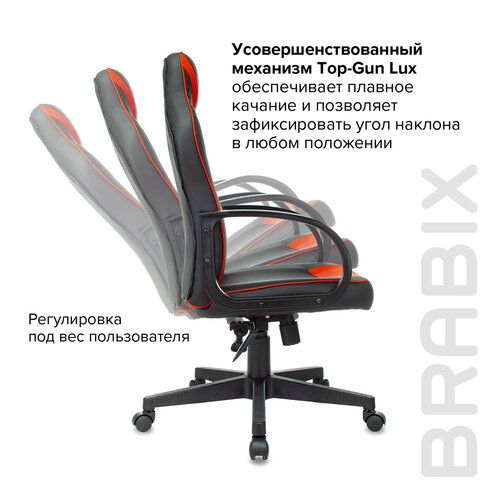 Кресло компьютерное BRABIX "Game GM-017", экокожа/ткань, черное/красное, 532642, GM-017_532642