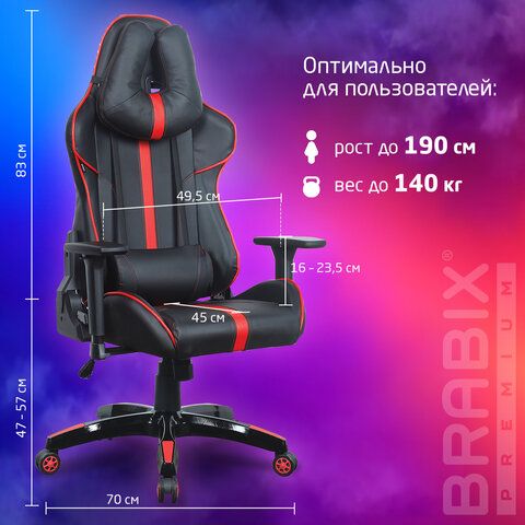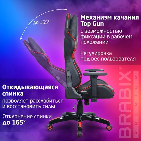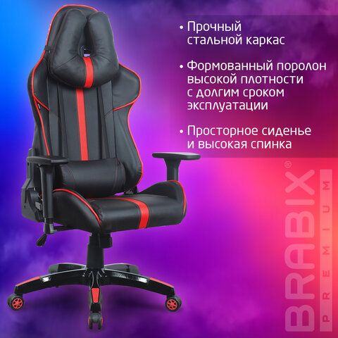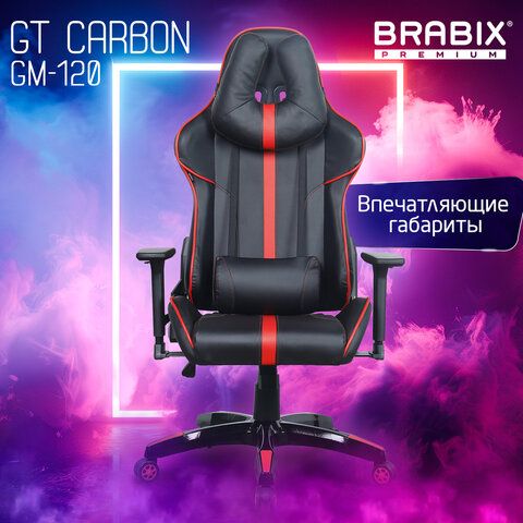 Кресло компьютерное BRABIX "GT Carbon GM-120", две подушки, экокожа, черное/красное, 531931