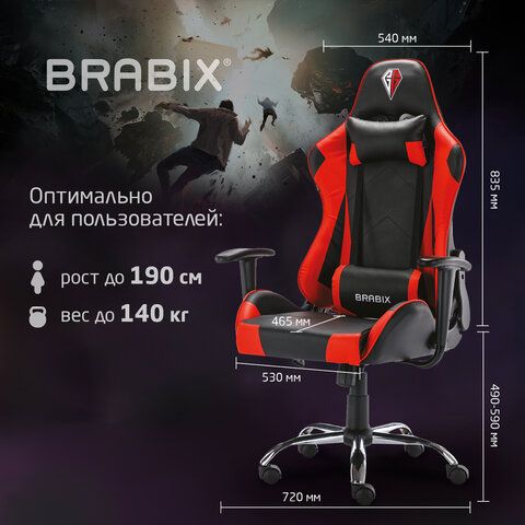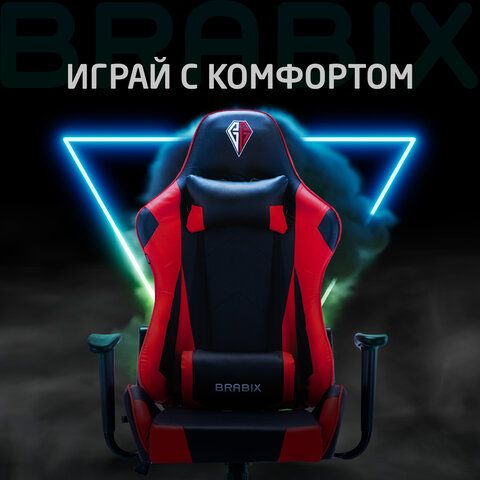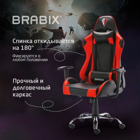 Кресло компьютерное BRABIX "Hunter GM-130", две подушки, экокожа, черное/красное, 532797