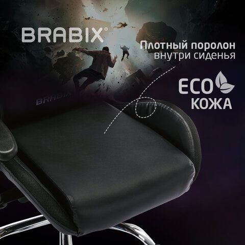 Кресло компьютерное BRABIX "Lumen GM-150 RGB", подсветка, две подушки, экокожа, черное, 532801