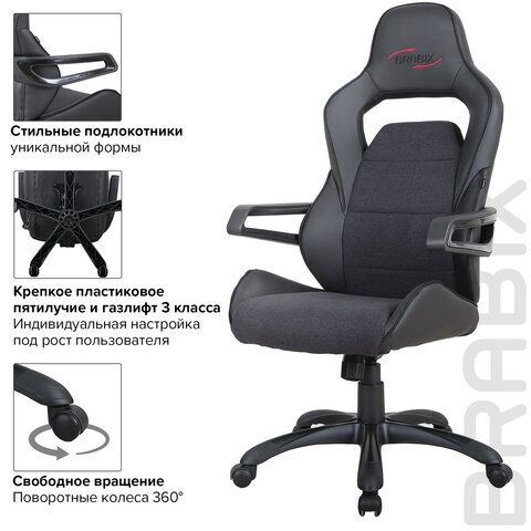 Кресло компьютерное BRABIX "Nitro GM-001", ткань, экокожа, черное, 531817