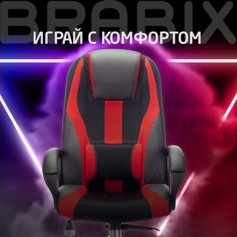 Кресло компьютерное BRABIX PREMIUM "Rapid GM-102", экокожа/ткань, черное/красное, 532107