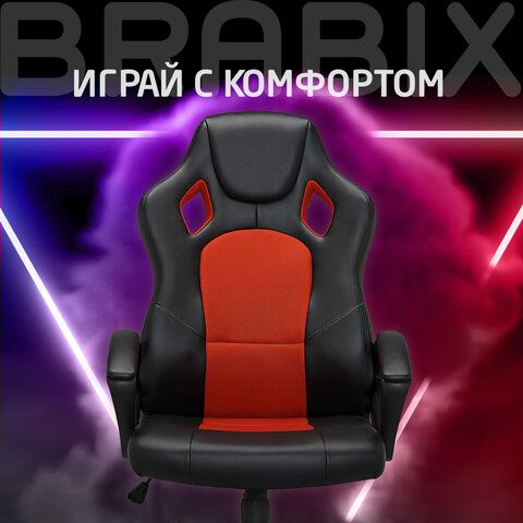 Кресло компьютерное BRABIX "Rider EX-544", экокожа черная/ткань красная, 531583