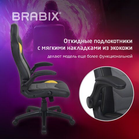 Кресло компьютерное BRABIX "Skill GM-005", откидные подлокотники, экокожа, черное/желтое, 532494