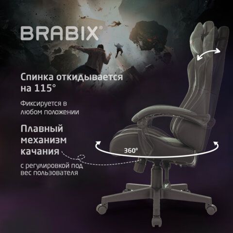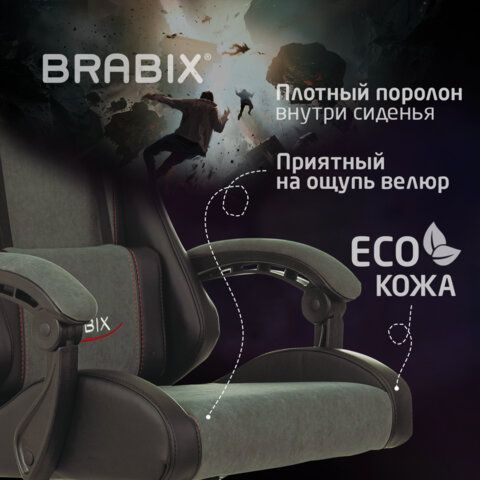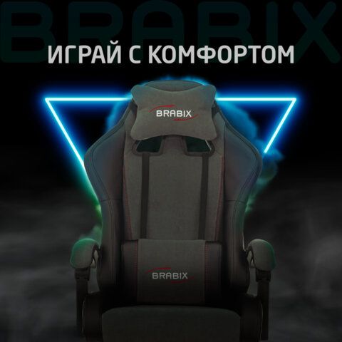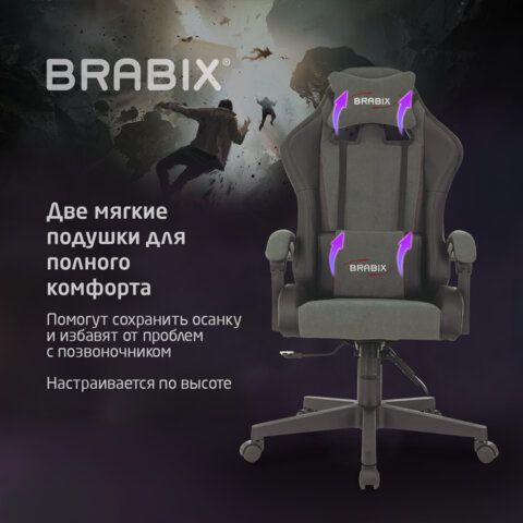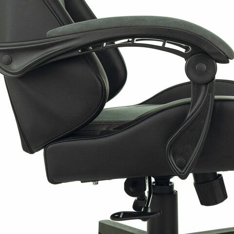 Кресло компьютерное BRABIX "Striker GM-121", синхромеханизм, 2 подушки, экокожа/велюр, черное/серое, 532961
