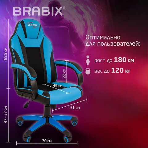 Кресло компьютерное BRABIX "Tanto GM-171", TW/экокожа, черное/голубое, 532575, 7083503