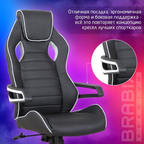 Кресло компьютерное BRABIX "Techno Pro GM-003", экокожа, черное/серое, вставки серые, 531814