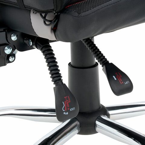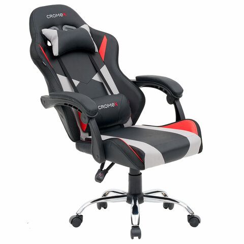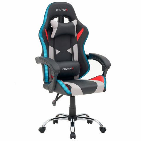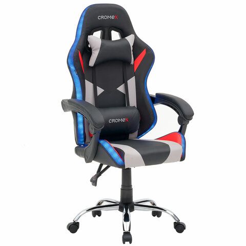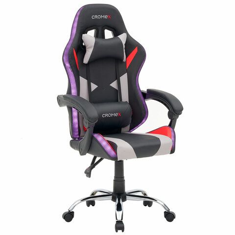 Кресло компьютерное CROMEX "Quantum GM-155 RGB", подсветка, две подушки, экокожа, черное/красное/серое, 532955