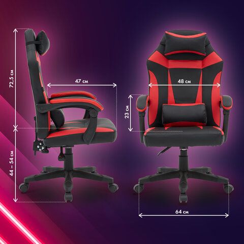 Кресло компьютерное CROMEX "Start GM-105", две подушки, экокожа, черное/красное, 532957