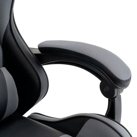 Кресло компьютерное DEFENDER Strider, 2 подушки, ткань/экокожа, черное/серое, ш/к 26715, 64056