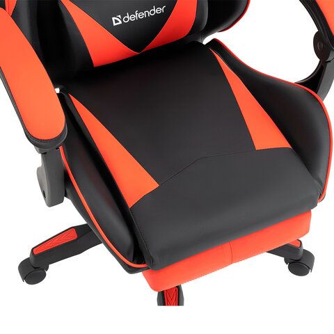 Кресло компьютерное DEFENDER Tornado, 2 подушки, подставка для ног, экокожа, черное/красное, ш/к 26722, 64057