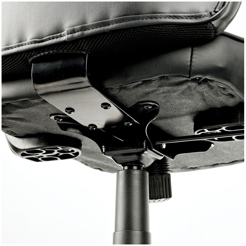 Максимальная нагрузка составляет 120 кг. Газпатрон 3 класса по стандарту DIN EN 16955. Каркас – немонолитный, материал набивки – вспененный полиуретан, крестовина – пластиковая, подлокотники – пластиковые, материал обивки – экокожа чёрного цвета. Механизм качания с возможностью фиксации кресла в рабочем положении. Гарантийный срок – 12 месяцев.