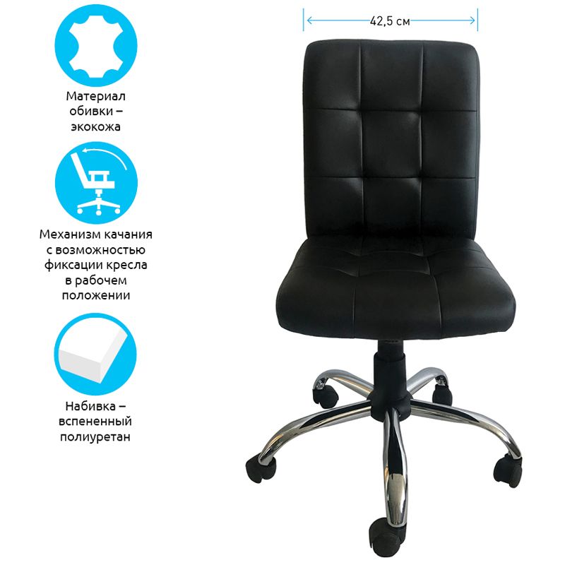Кресло оператора Helmi HL-M08 "Squared", экокожа черная, механизм качания, без подлокотников