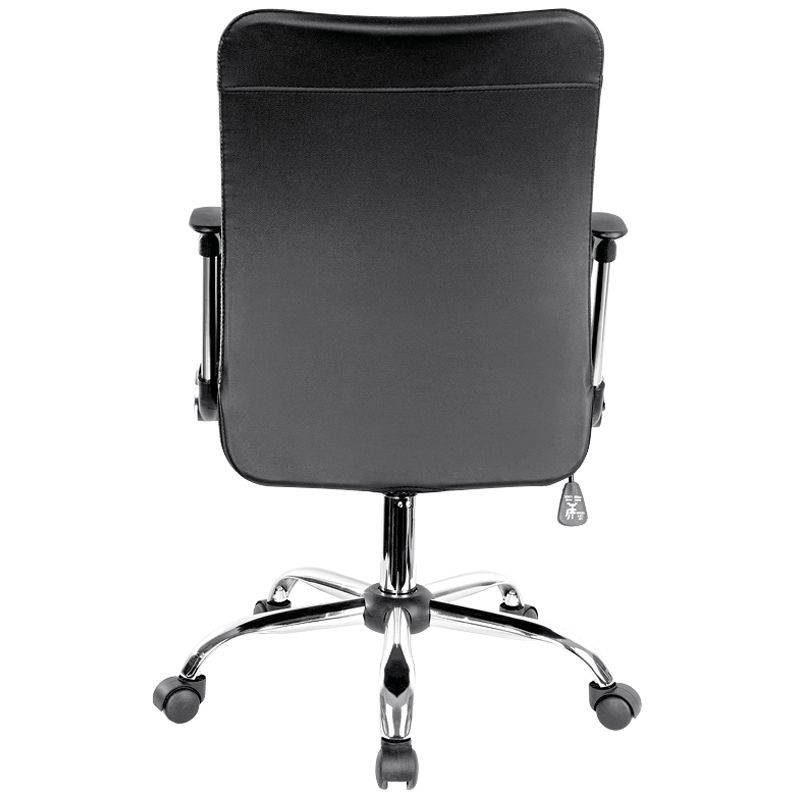 Максимальная нагрузка – 120 кг. Газпатрон 2 класс по стандарту BIFMA X5.1. Каркас – немонолитный, материал набивки – вспененный полиуретан, крестовина – хромированный металл, подлокотники пластиковые с хромированными элементами, материал обивки – экокожа чёрного цвета. Механизм качания с возможностью фиксации кресла в рабочем положении. Гарантийный срок – 12 месяцев.