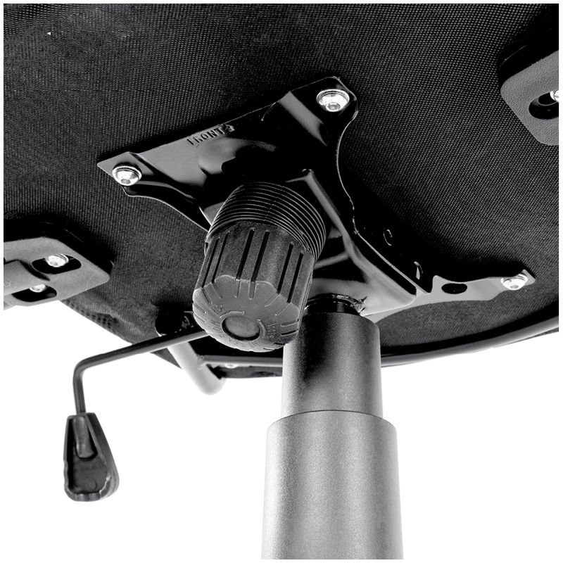 Максимальная нагрузка – 120 кг. Газпатрон 2 класс по стандарту BIFMA X5.1. Каркас – немонолитный, материал набивки – вспененный полиуретан, крестовина – хромированный металл, подлокотники пластиковые с хромированными элементами, материал обивки – ткань/сетка чёрного цвета. Механизм качания с возможностью фиксации кресла в рабочем положении. Гарантийный срок – 12 месяцев.