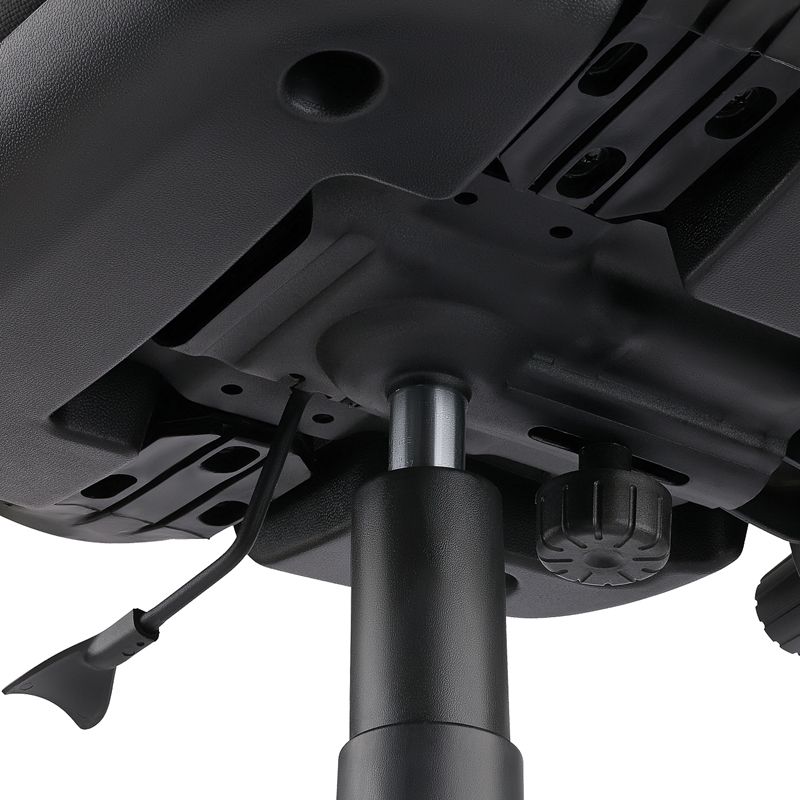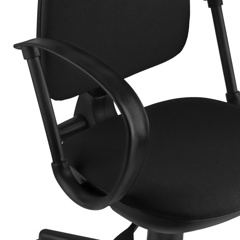 Максимальная нагрузка – 100 кг. Газпатрон 2 категории. Каркас – немонолитный, материал набивки – поролон, крестовина – пластик, материал обивки – ткань чёрного цвета. Механизм регулировки кресла по высоте, со свободным ходом отклонения спинки кресла и регулировкой жесткости, но без какой-либо фиксации.