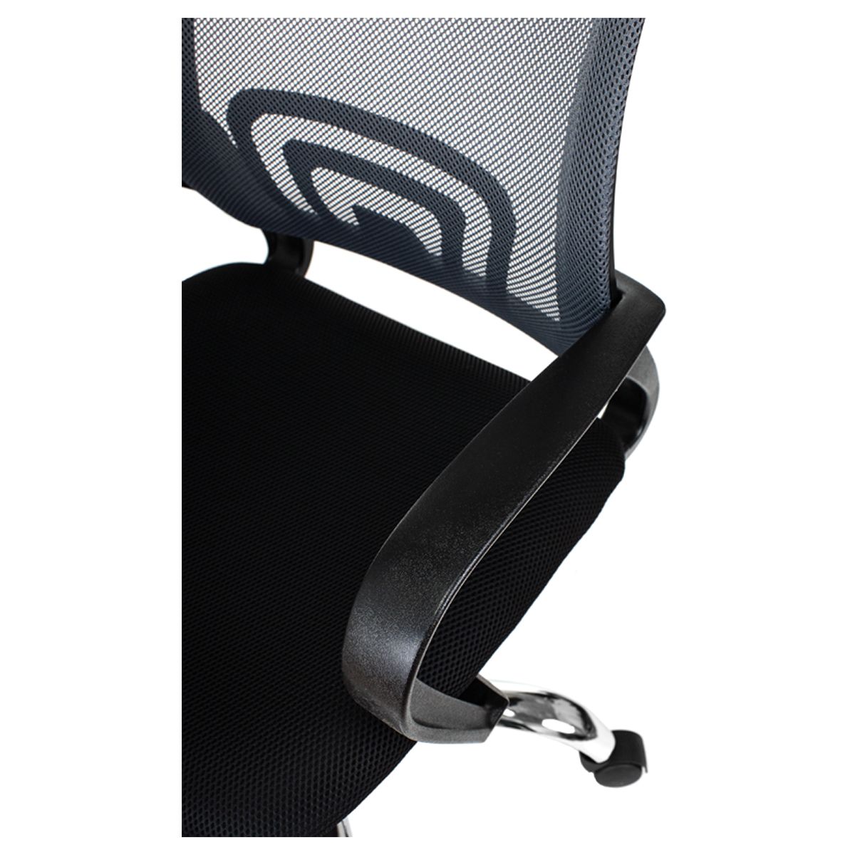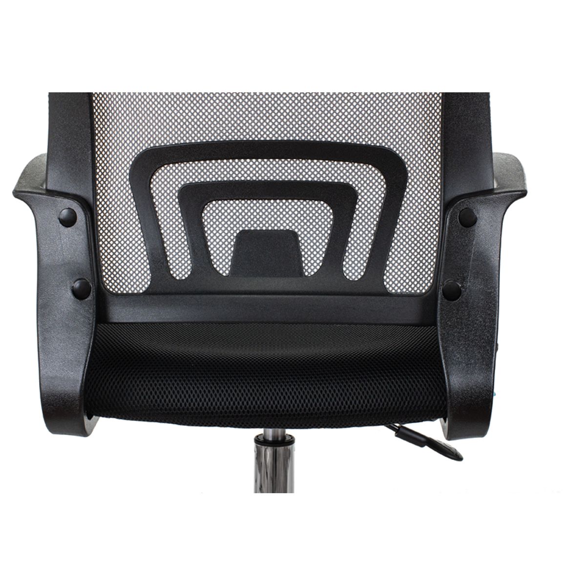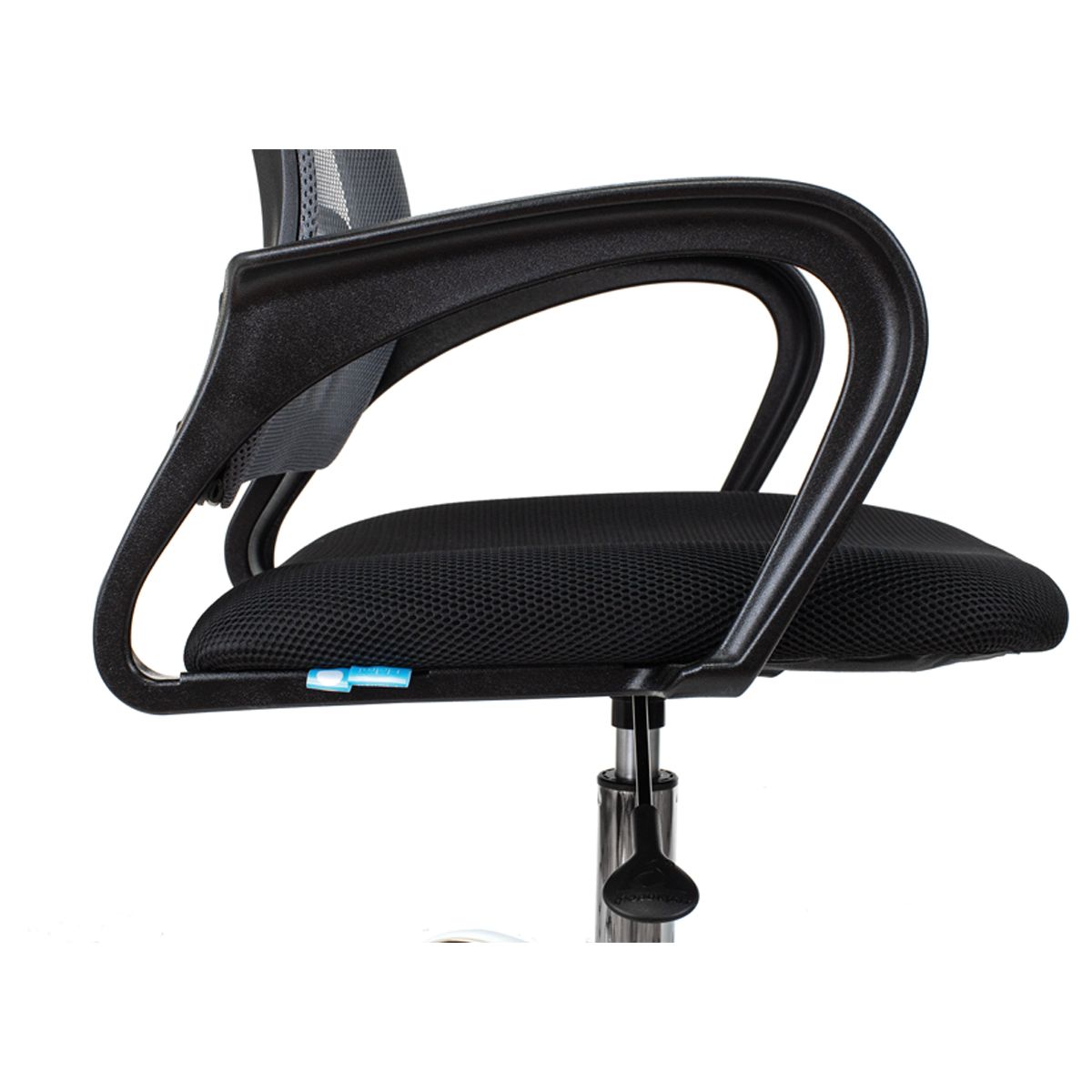 Максимальная нагрузка составляет 120 кг. Газпатрон 3 класса по стандарту Germany DIN 4550. Каркас – немонолитный, материал набивки – поролон, крестовина – хромированный металл, подлокотники изготовлены из пластика. Спинка из сетчатого акрила серого цвета подстраивается под физиологические изгибы спины. Сиденье выполнено из ткани чёрного цвета. Без механизма качания. Регулировка кресла по высоте. Гарантийный срок – 3 года. Кресло поставляется в картонной коробке в разобранном виде.