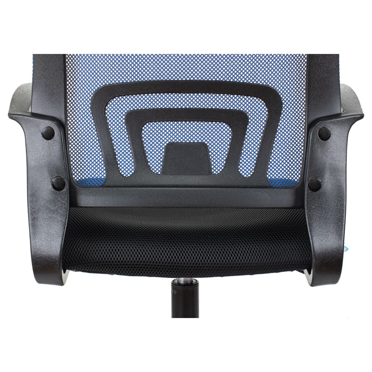 Максимальная нагрузка составляет 120 кг. Газпатрон 2 класса по стандарту Germany DIN 4550. Каркас – немонолитный, материал набивки – поролон, крестовина – пластиковая, подлокотники тоже изготовлены из пластика. Спинка из сетчатого акрила синего цвета подстраивается под физиологические изгибы спины. Сиденье выполнено из ткани чёрного цвета. Без механизма качания. Регулировка кресла по высоте. Гарантийный срок – 3 года. Кресло поставляется в картонной коробке в разобранном виде.