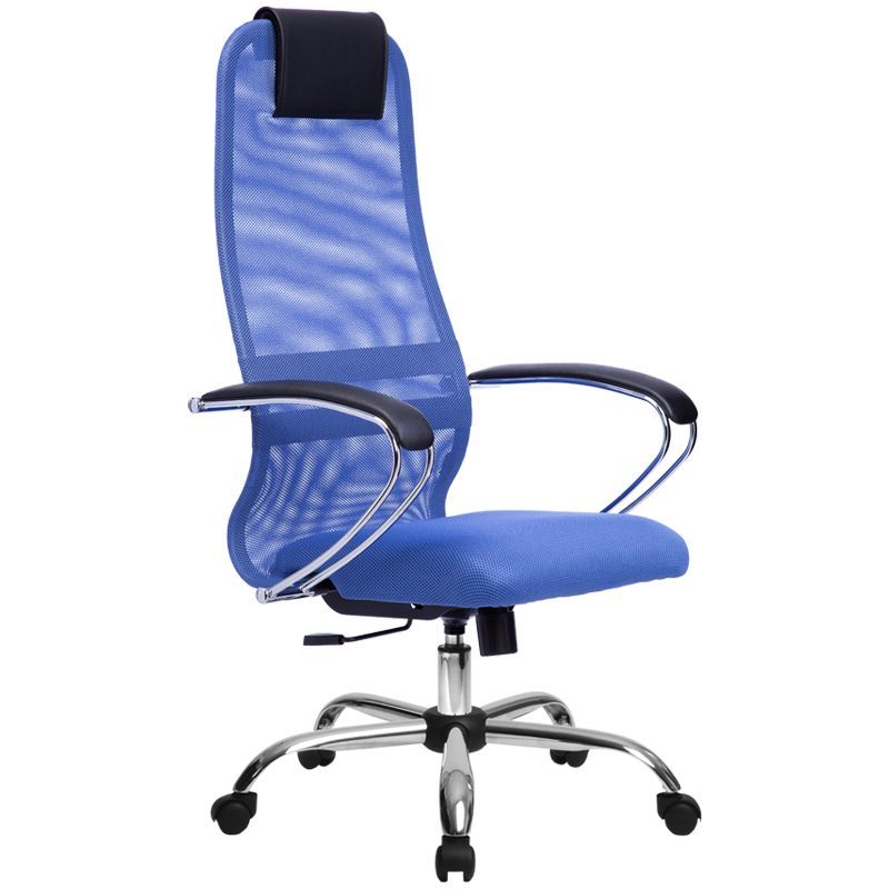 Кресло руководителя Метта SU-BK-8 CH, ткань-сетка синяя №23, спинка-сетка, топ-ган (101/003, 131/003)