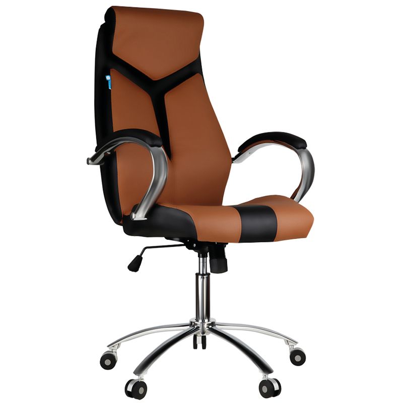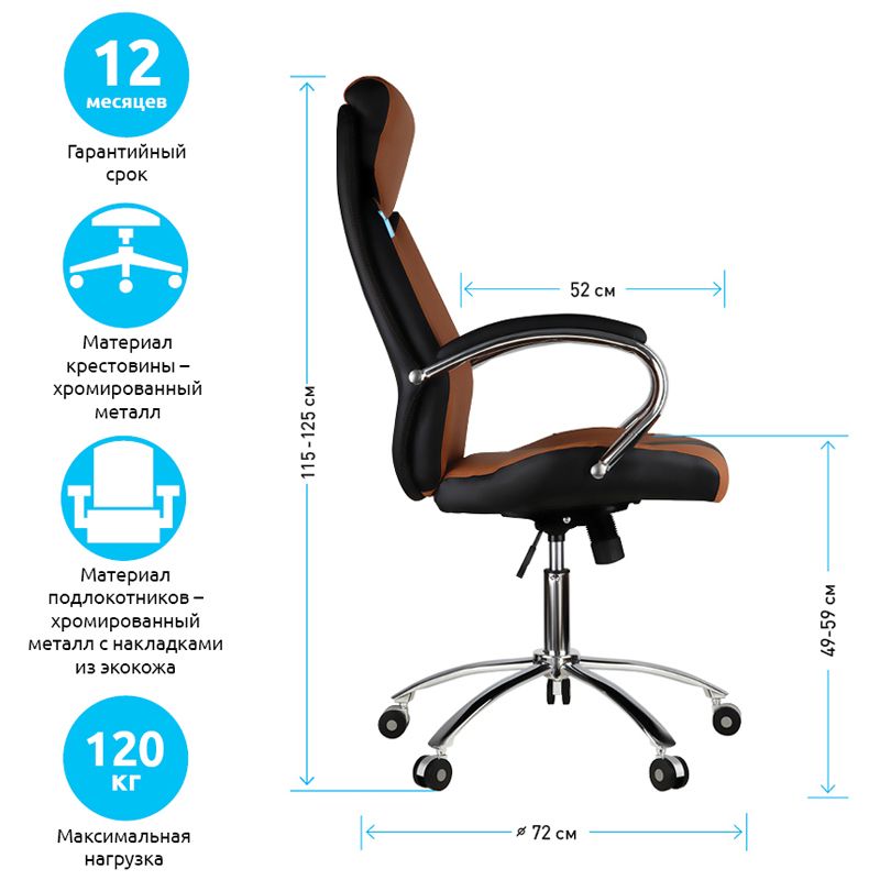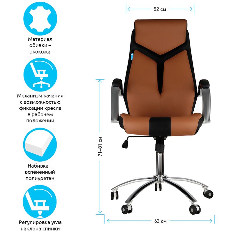 Кресло руководителя Helmi HL-E01 "Inari", экокожа черная/коричневая, хром