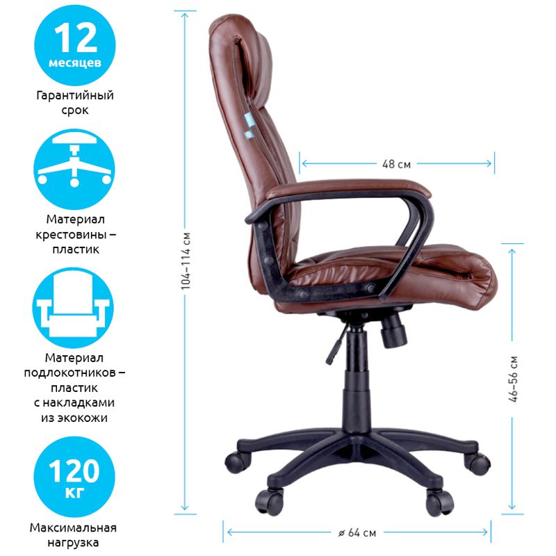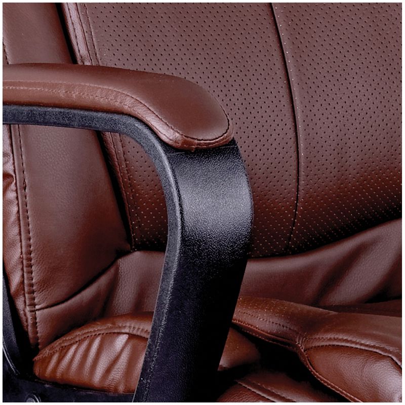 Аккуратное руководительское кресло среднего класса, обладающее чертами моделей более высокого уровня - выделенная зона подголовника, комбинация гладкой и перфорированной экокожи коричневого цвета, мягкие подлокотники. Каркас – немонолитный, материал набивки – вспененный полиуретан, крестовина – пластик. Гарантийный срок – 12 месяцев.