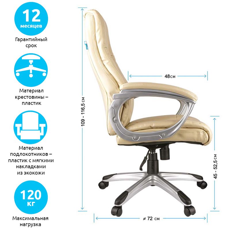 Кресло руководителя Helmi HL-E09 "Capital", экокожа бежевая