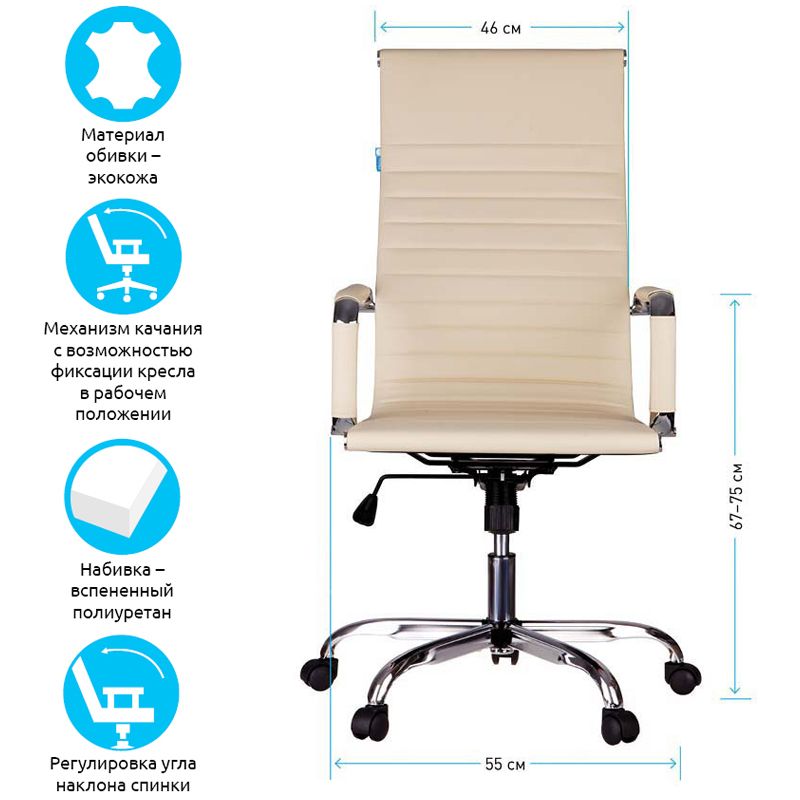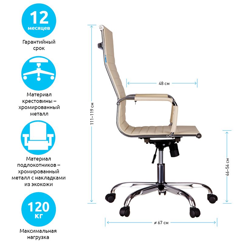 Кресло руководителя Helmi HL-E17 "Slim", экокожа бежевая, хром