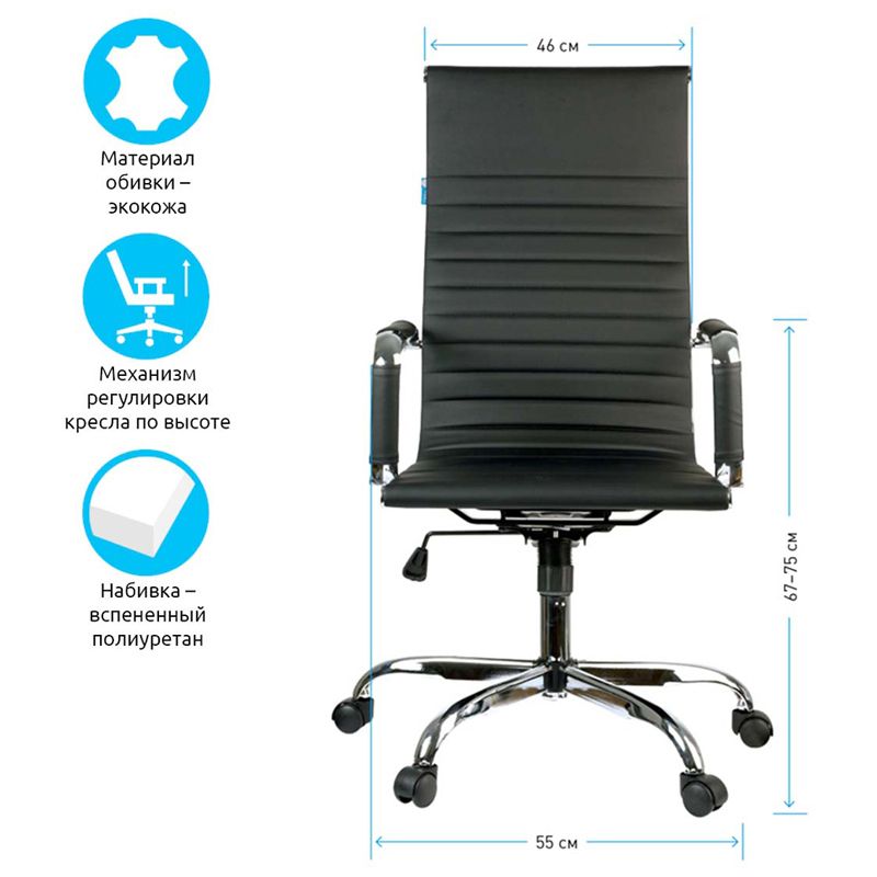 Кресло руководителя Helmi HL-E17 "Slim", экокожа черная, хром