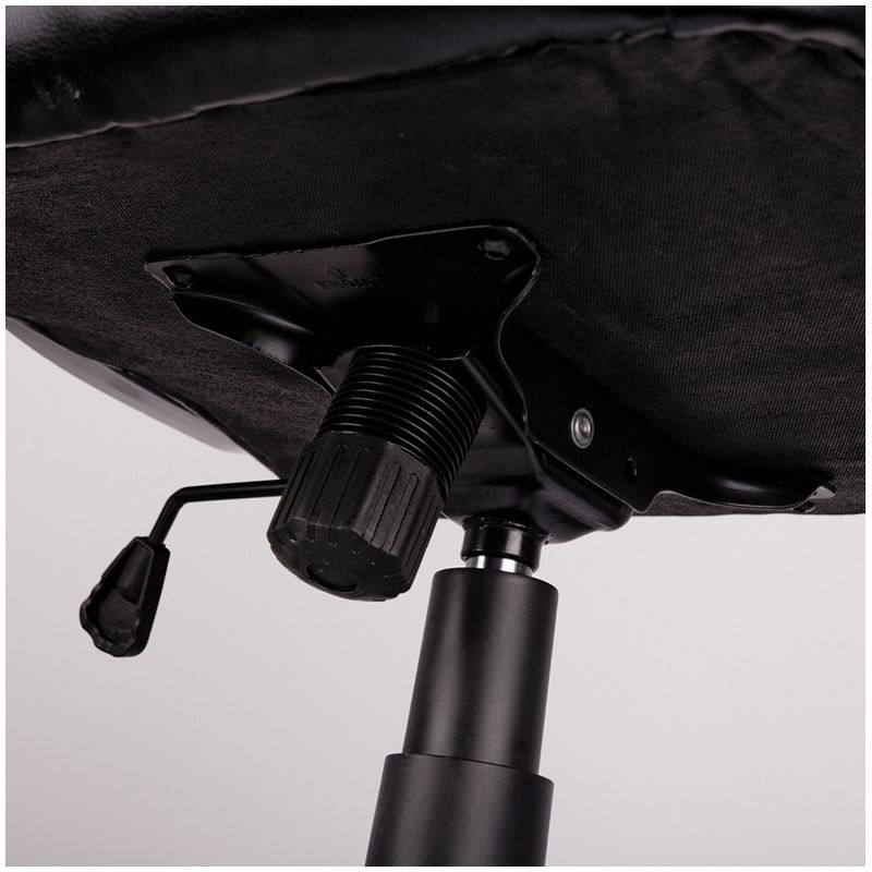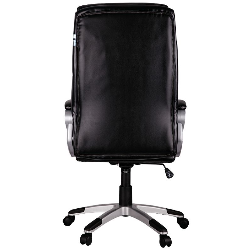 Максимальная нагрузка составляет 120 кг. Газпатрон 4 категории по стандарту Germany DIN 4550. Каркас – немонолитный, материал набивки – вспененный полиуретан, крестовина – серебристый пластик, материал обивки – экокожа чёрного цвета. Модель имеет пластиковые подлокотники с накладками из экокожи. Механизм качания с возможностью фиксации кресла в рабочем положении. Гарантийный срок – 24 месяца.