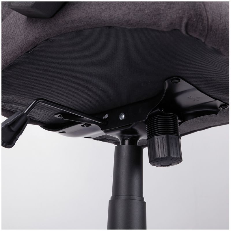 Максимальная нагрузка составляет 120 кг. Газпатрон 3 класса по стандарту BIFMA X5.1. Каркас – немонолитный, материал набивки – вспененный полиуретан, крестовина – пластик, материал обивки – ткань серого цвета. Модель имеет пластиковые подлокотники с накладками из ткани. Механизм качания с возможностью фиксации кресла в рабочем положении. Гарантийный срок – 12 месяцев.