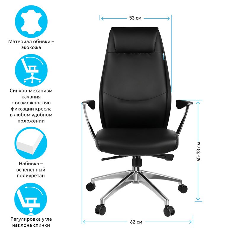 Кресло руководителя Helmi HL-E33 "Synchro Premium", экокожа черная, синхромеханизм, алюминий, до 150кг