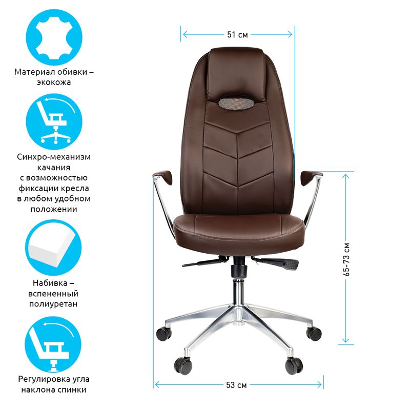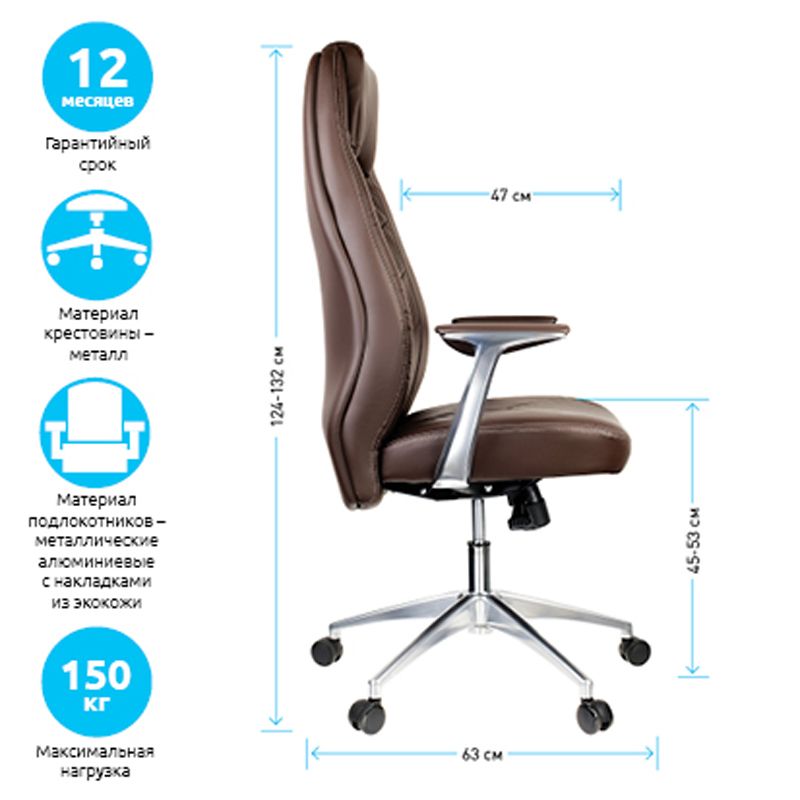 Кресло руководителя Helmi HL-E34 "Synchro Business", экокожа коричневая, синхромеханизм, алюминий, до 150кг