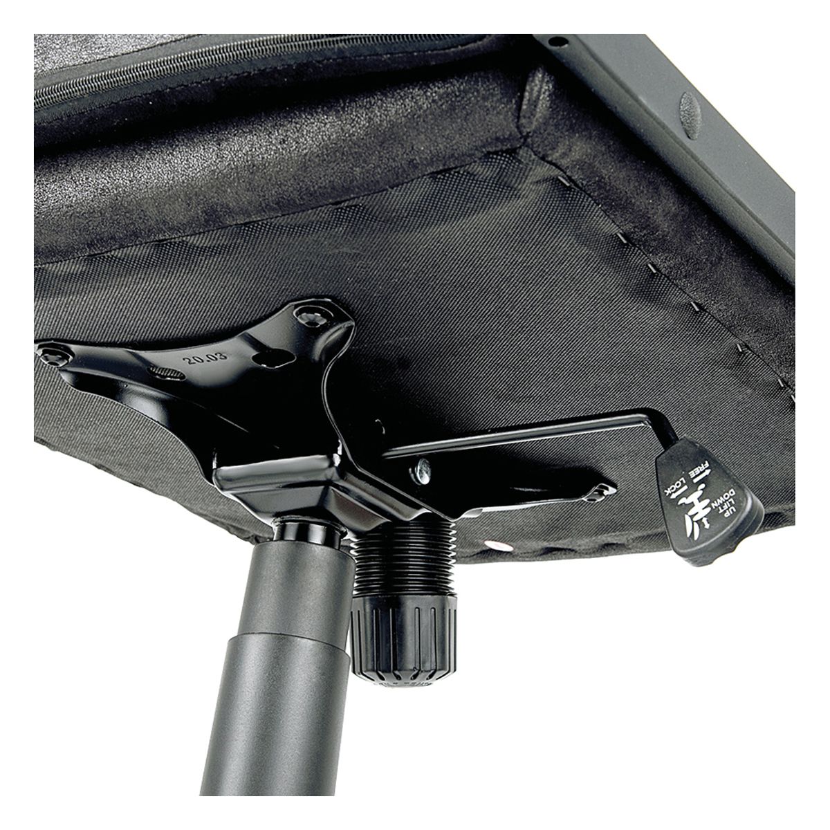 Максимальная нагрузка составляет 120 кг. Газпатрон 3 класса по стандарту BIFMA X5.1. Каркас – немонолитный, материал набивки – вспененный полиуретан, крестовина – пластик, материал обивки – ткань чёрного цвета. Модель имеет металлические крашеные подлокотники с накладками из ткани. Механизм качания с возможностью фиксации кресла в рабочем положении. Гарантийный срок – 12 месяцев.