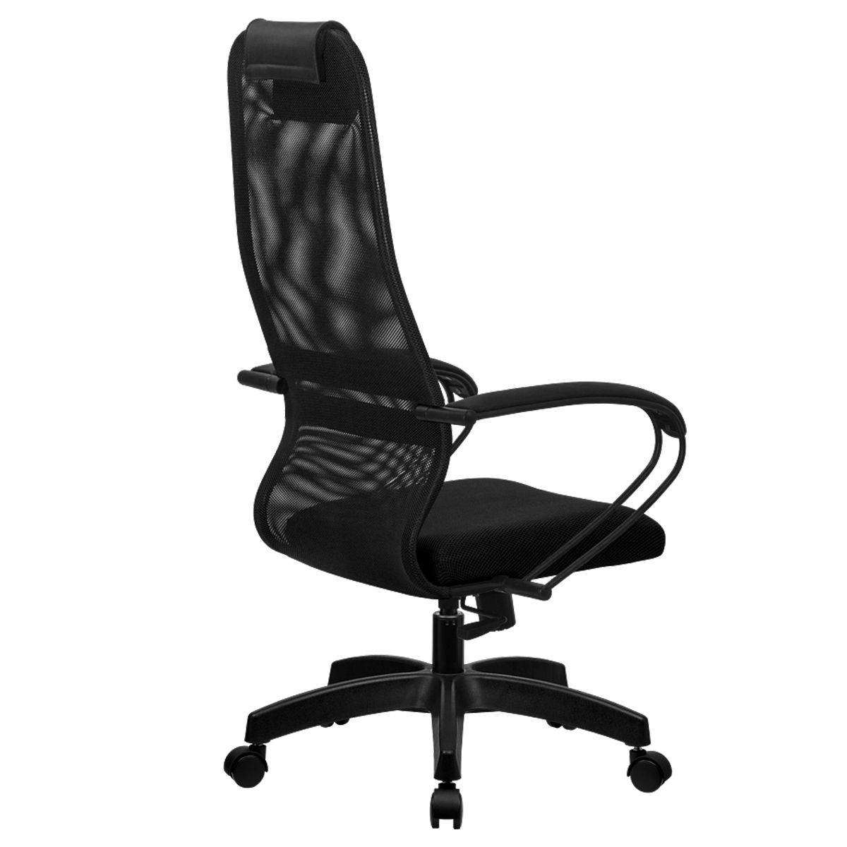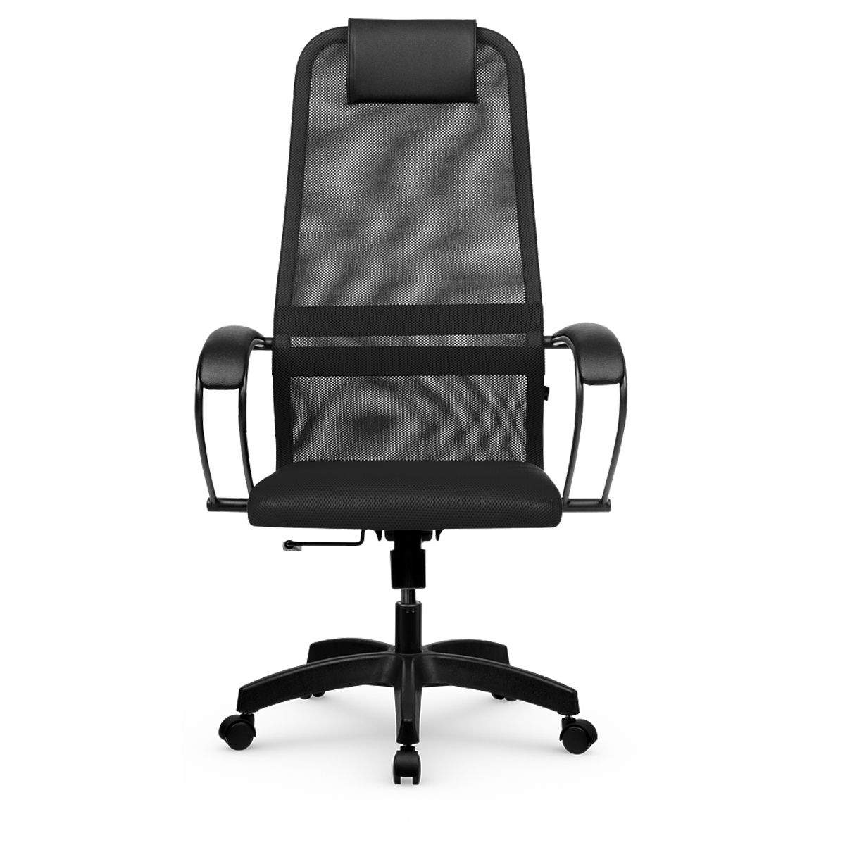 Высокая замкнутая сверху спинка кресла. Удобный комфортный подголовник, комплектуется дополнительной вставкой, увеличивающей объем. Мягкое комфортное объемное сиденье. Уникальная форма передней части сиденья исключает сдавливание сосудов ног, сохраняя ощущение легкости в ногах. Сверхпрочный стальной каркас спинки с износостойким полимерным покрытием черного цвета. Стальные классические подлокотники покрытые износостойким полимерным покрытием черного цвета. Механизм качания топ-ган дает возможность отклоняться в кресле, настраивать жесткость качания и зафиксировать его в рабочем (вертикальном) положении. Регулировка высоты сиденья. Экологически чистые обивочные материалы, обладающие высокой степенью воздухопроницаемости, с повышенной износостойкостью и презентабельным внешним видом. Материалы обивки позволяют телу «дышать», обеспечивая свободную циркуляцию воздуха. Спинка: ткань-сетка мягкая, сиденье и подголовник - обивочная сетчатая ткань. Гарантийный срок – 24 месяца.