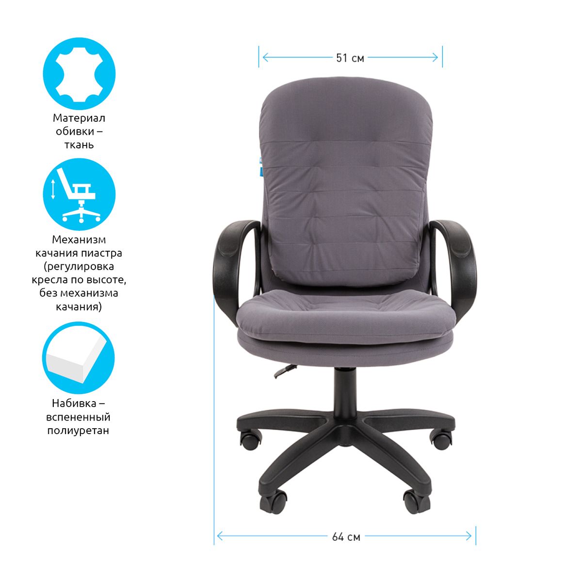 Кресло выполнено в обивке из износостойкой и практичной ткани серого цвета, что делает его отличным решением как для оснащения офиса, так и домашнего кабинета.