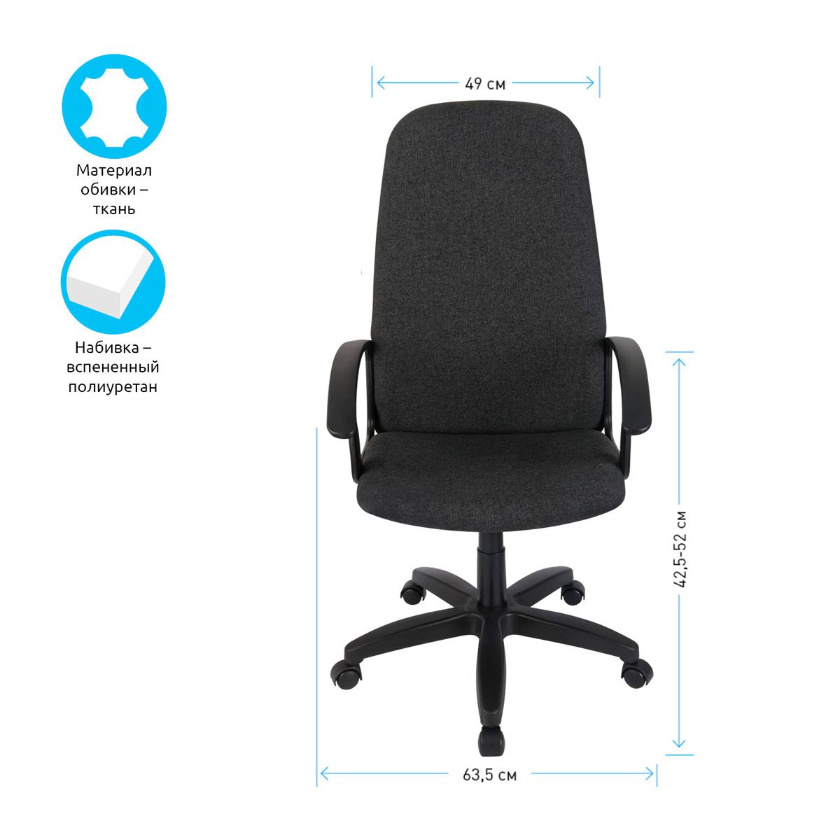 Максимальная нагрузка составляет 100 кг. Газпатрон 2 категории по стандарту Germany DIN 4550. Каркас – немонолитный, материал набивки – вспененный полиуретан, крестовина – пластик, подлокотники – пластик, материал обивки – практичная и износостойкая ткань серого цвета. Регулировка по высоте позволяет настроить сиденье под конкретного пользователя. Гарантийный срок –24 месяца.